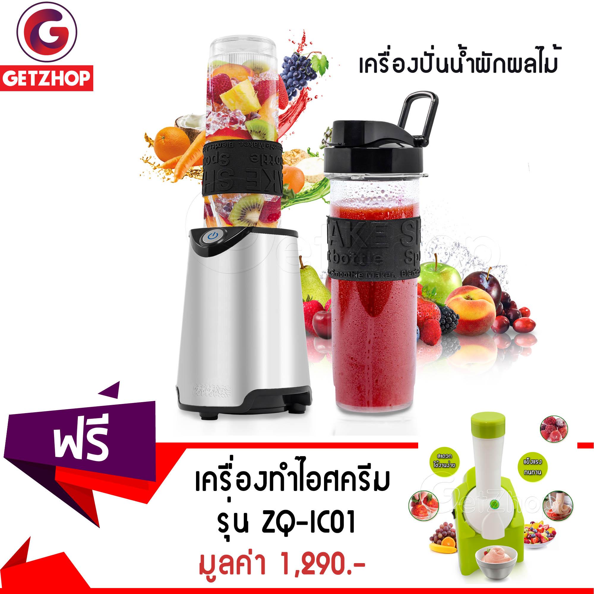 ขาย GetZhop เครื่องปั่นน้ำผลไม้เอนกประสงค์ 2 กระบอกพกพา รุ่น DDX-828 แถมฟรี! เครื่องทำไอศครีม & โยเกิร์ตและผลไม้ Kingbird รุ่น ZQ-IC01 (สีเขียว) ราคาถูกส่งฟรีทั่วประเทศ