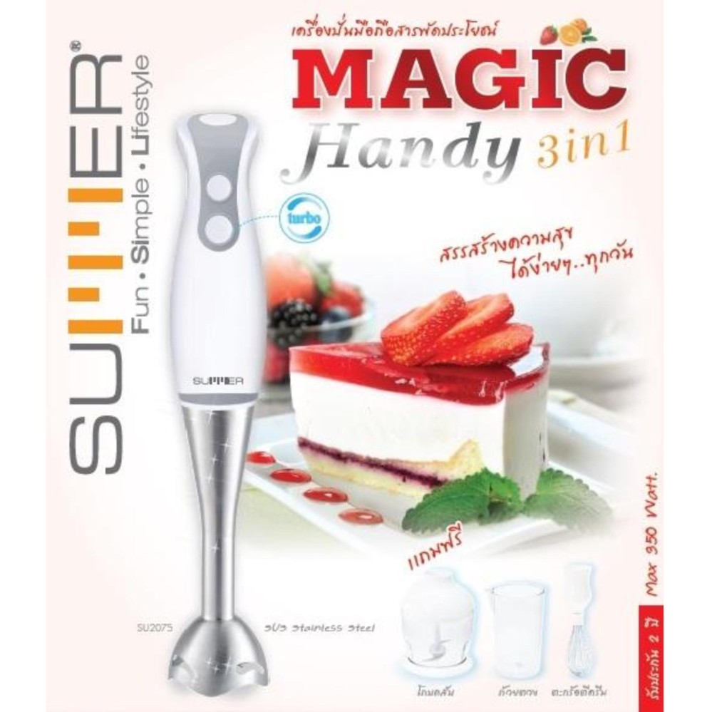- อ่านรีวิว SUMMER Magic Handy 3 In 1เครื่องปั่นมือถือสารพัดประโยชน์ รุ่นSU2075สีเทา